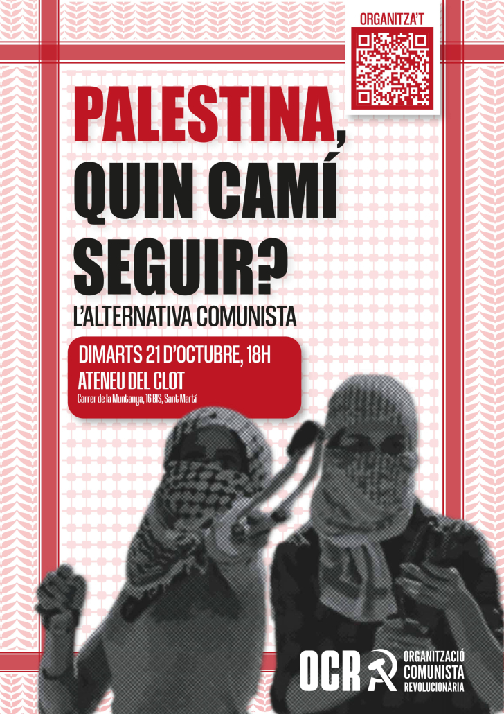 Si estàs interessat a conèixer més sobre l’alternativa comunista per continuar la lluita per Palestina i per la lluita obrera internacionalista, uneix-te a la xerrada que celebrem Dimarts dia 21 d’Octubre a les 18h, a l’Ateneu del Clot.