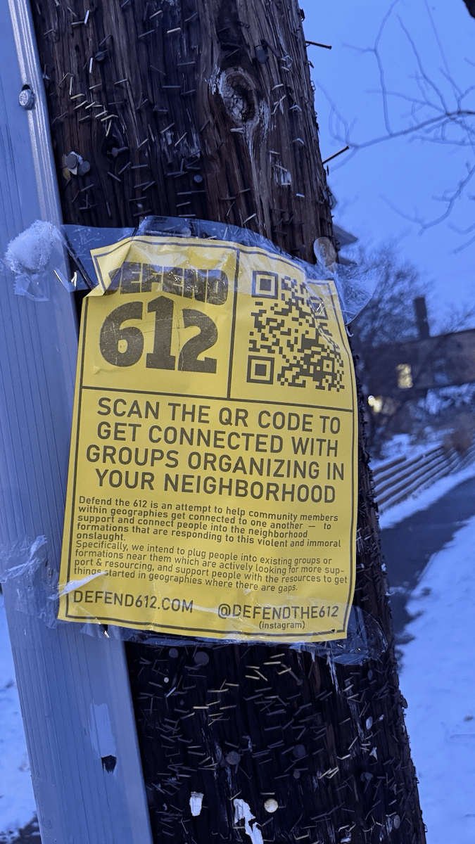 Els esdeveniments a Minneapolis han continuat escalant. Després de la trobada massiva de la setmana passada, han aparegut cartells per tot el barri amb enllaços i codis QR per unir-se a les «formacions veïnals». Molts dels grups de defensa del barri tenen líders activistes o capitans autoproclamats.