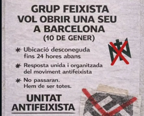 Aquest dissabte 10 de gener, a les 18 h, el grup feixista Núcleo…